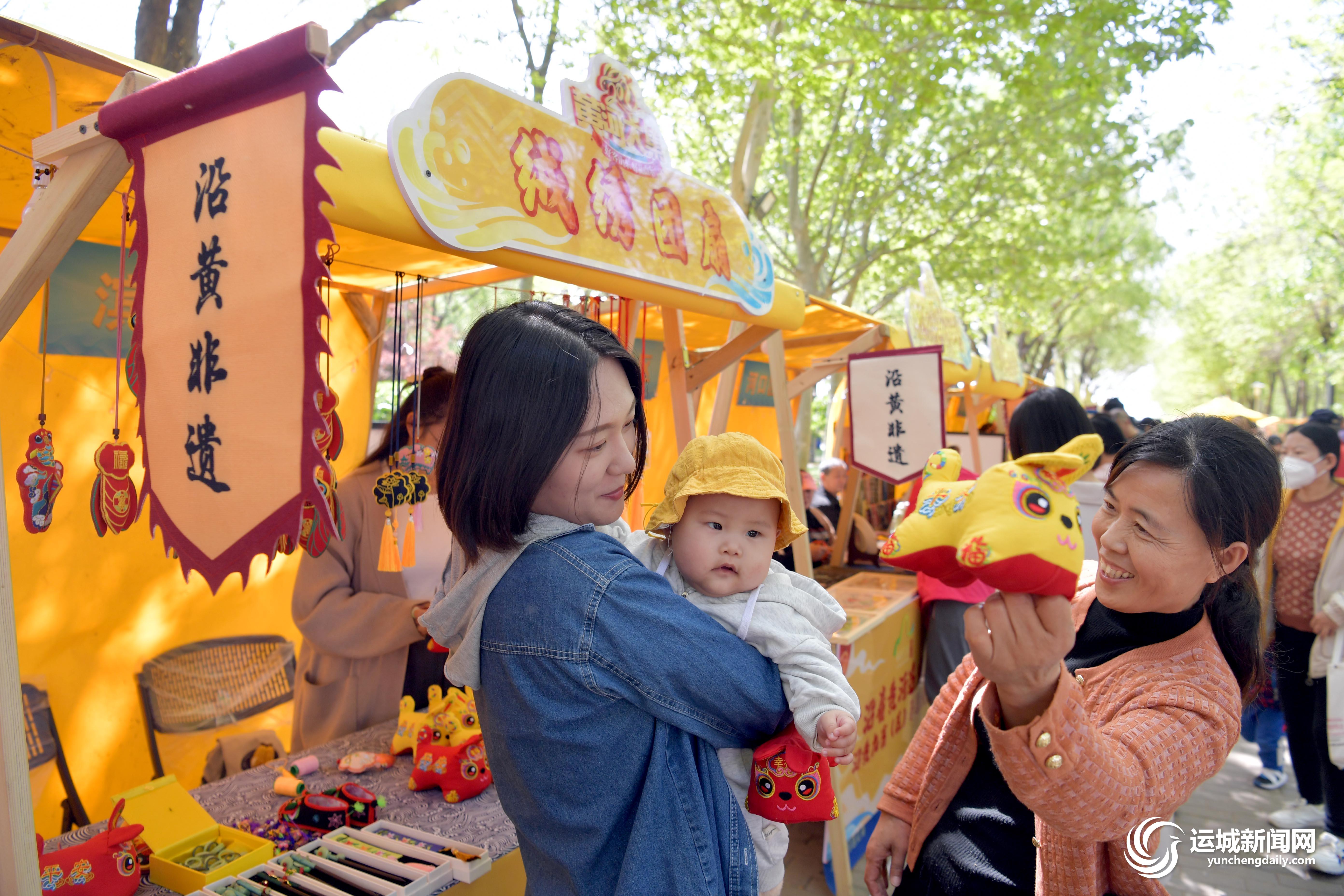 ▲4月18日,市民在东营市清风湖黄河大集上参观非遗展。