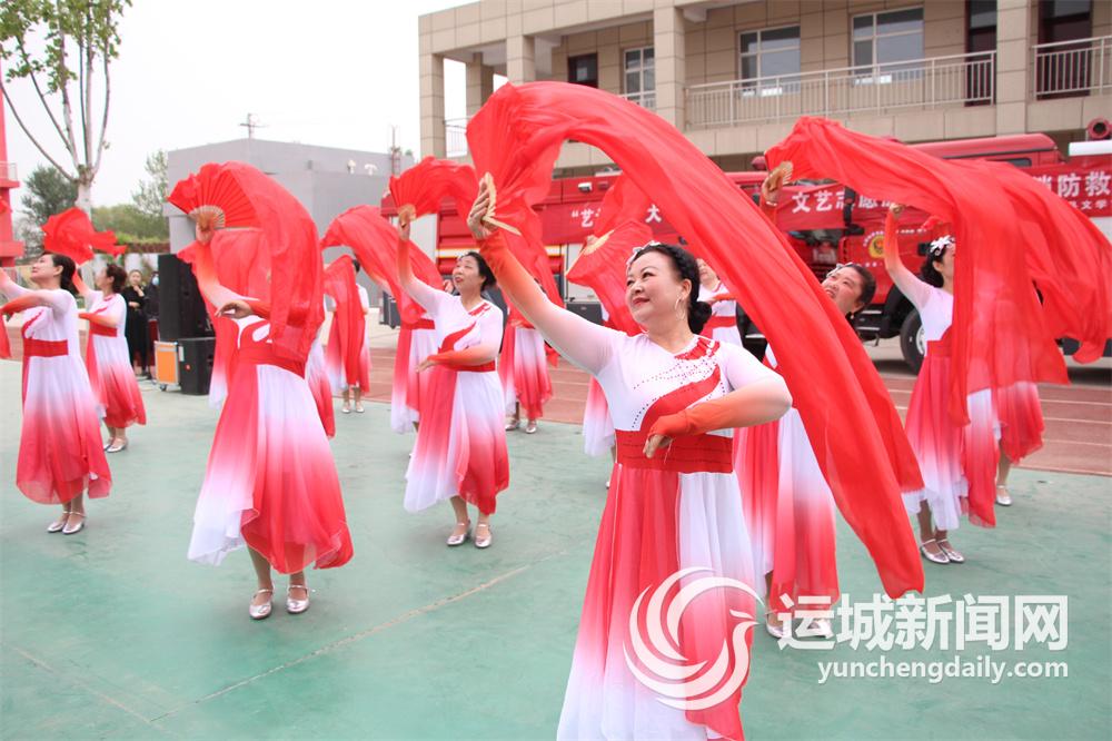 4月16日,闻喜县文学艺术界联合会组织文艺爱好者来到该县消防应急救援大队,以艺术形式宣传贯彻党的二十大精神。 特约摄影 刘 佳 摄