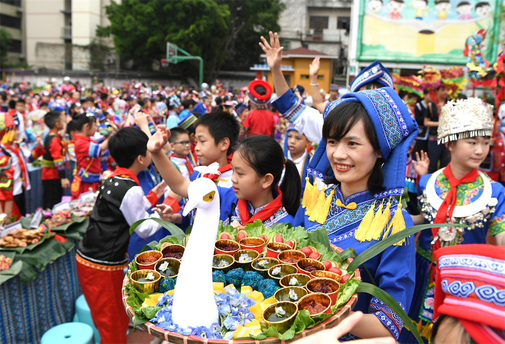 当日,逸夫小学举行2023“壮族三月三”暨“铸牢中华民族共同体意识”主题教育活动。随着传统节日“壮族三月三”临近,广西各地陆续开展丰富多彩的庆祝活动。