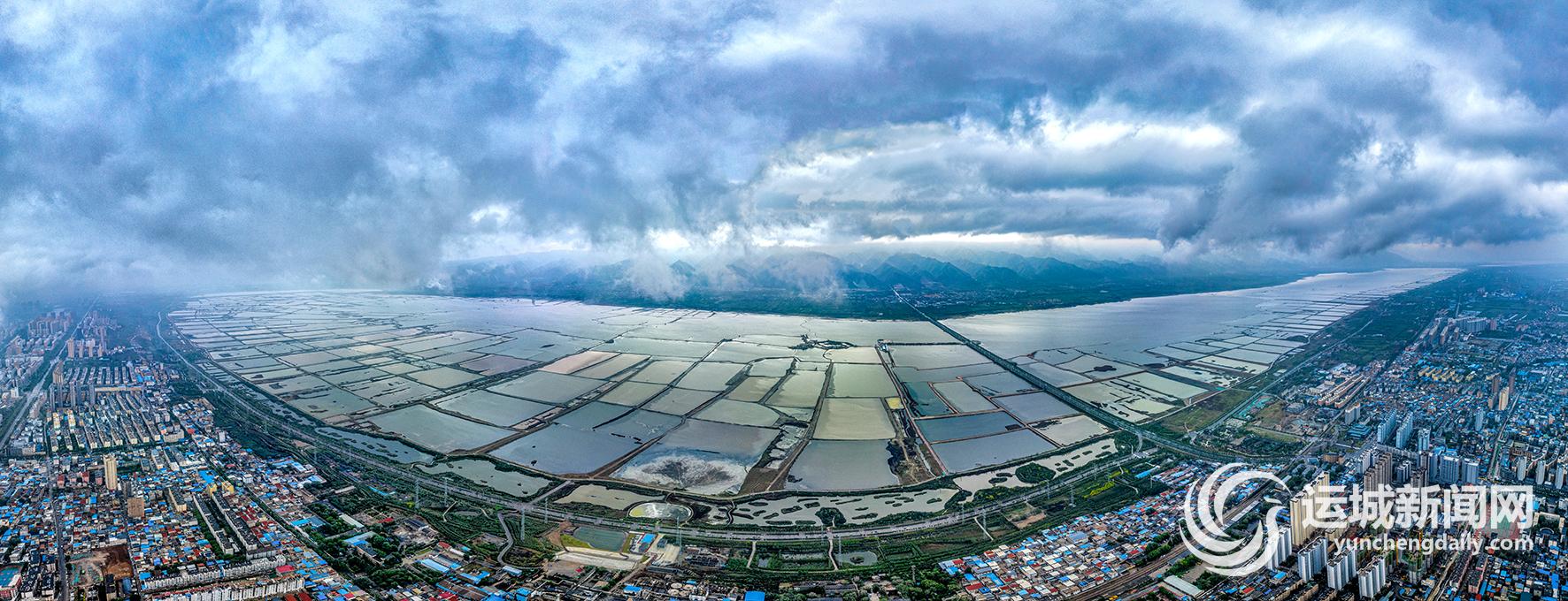 ▲4月21日拍摄的雨后盐湖美景。我市当日迎来降雨天气,雨后市区上空出现壮美的云海景观。据悉,此次降雨天气将持续到24日。 记者 薛俊 摄