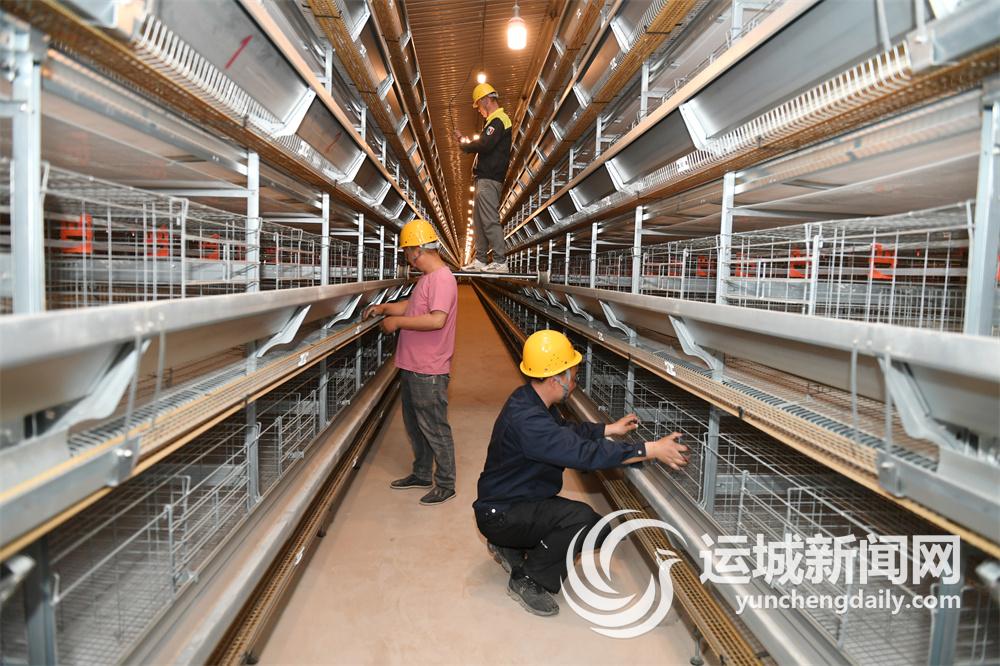 4月20日,工人在稷山县国家现代农业产业园昊鑫蛋鸡养殖小区安装调试设备。