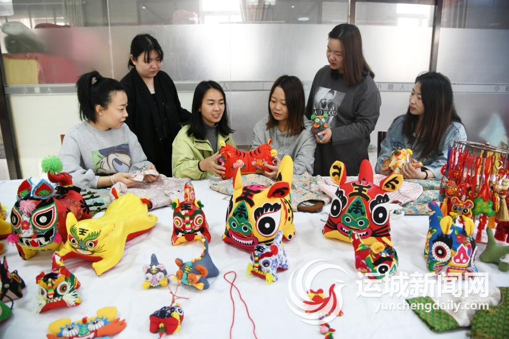 4月23日,在闻喜县一家婴幼儿服饰公司生产车间,经过技能培训的城乡妇女持证上岗,一起交流布艺工艺。