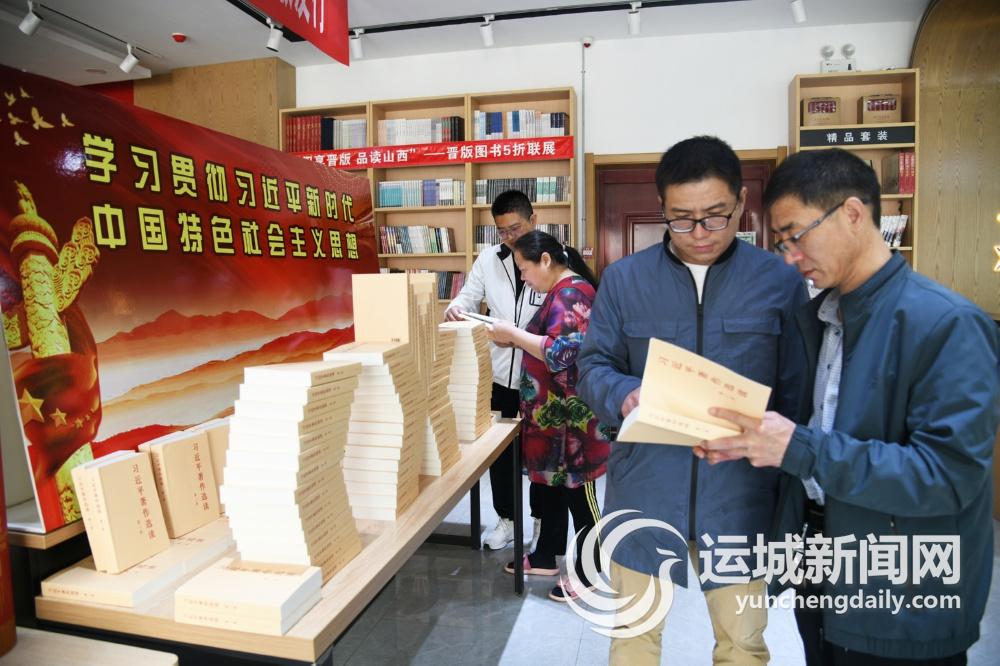 4月20日,在闻喜新华书店,读者在阅读《习近平著作选读》第一卷、第二卷。
