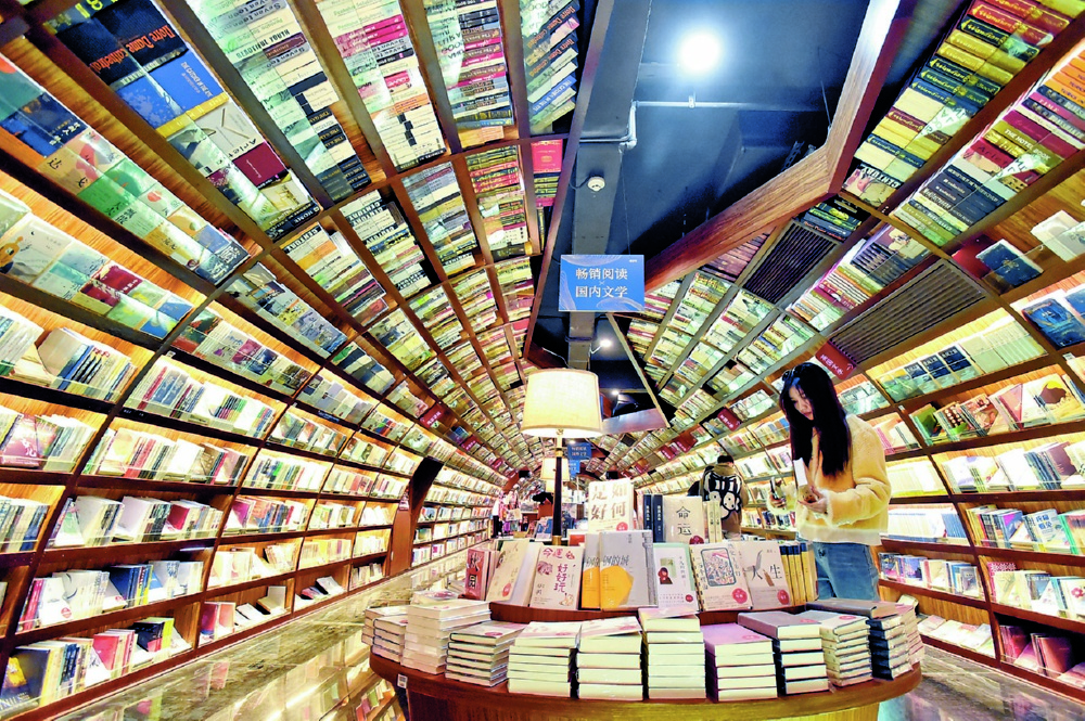 4月22日,读者在钟书阁扬州珍园店内选购图书。 新华社发(庄文斌 摄)