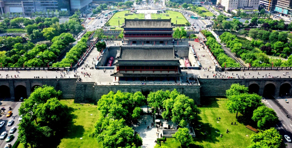 西安明城墙永宁门(4月25日摄,无人机照片)。
