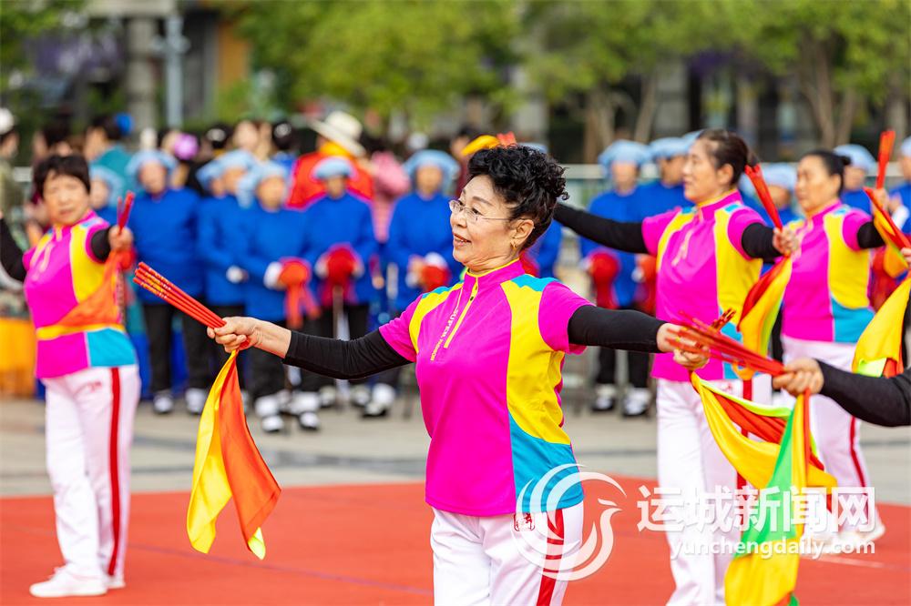 4月25日,盐湖区在人民公园举办迎“五一”健身节目展演,展示老年风采,助力全民健身。 图为演员在表演节目。