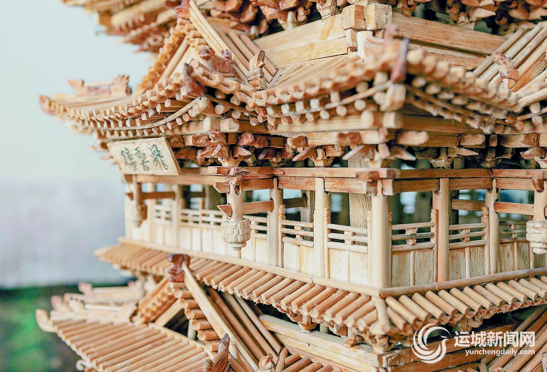 “太像了!简直一模一样!”走进我市66岁退休工人王宏的家,摆在客厅飘窗上的竹签版“国宝”建筑——解州关帝庙春秋楼和万荣飞云楼甚是吸睛。
