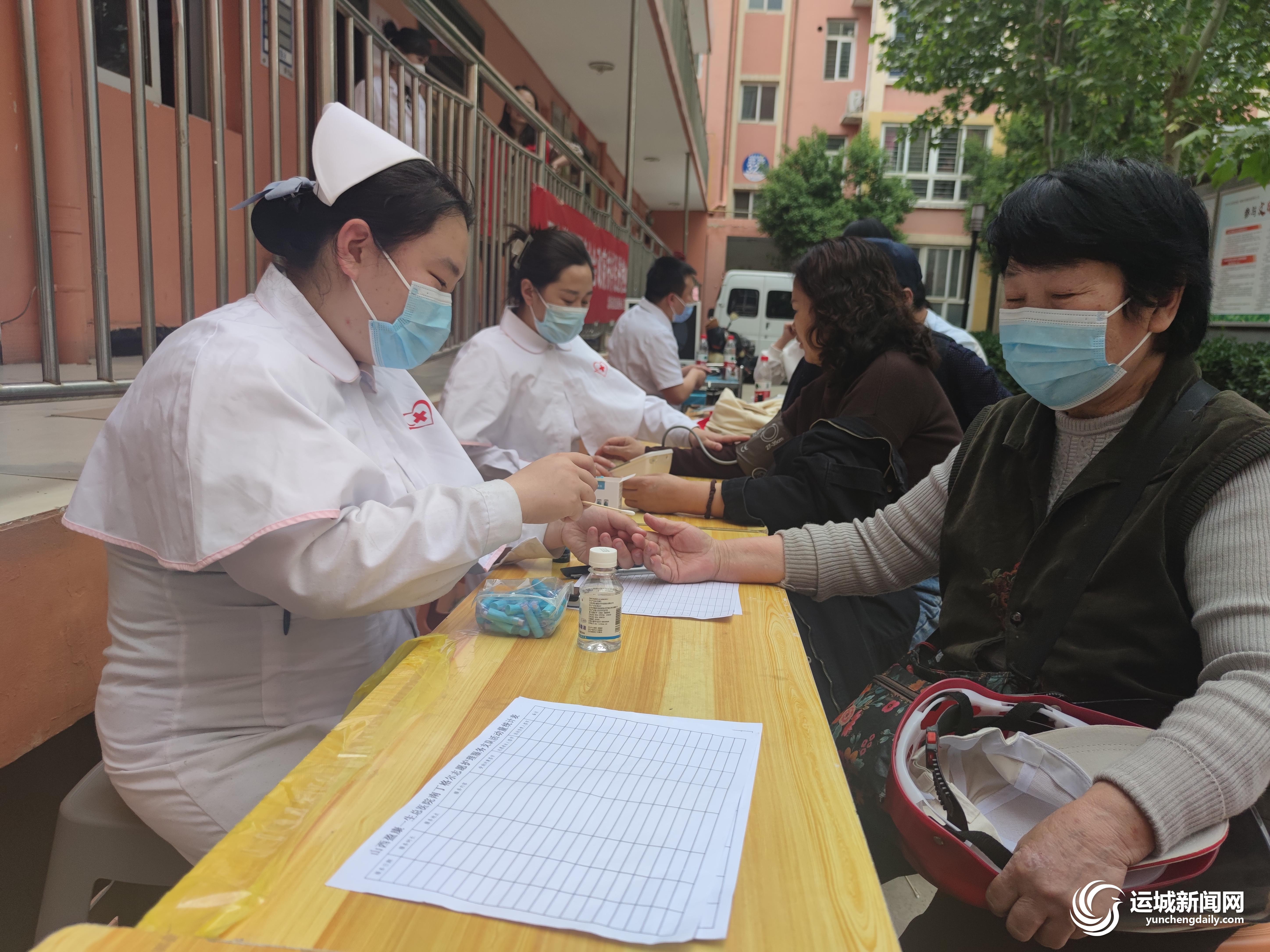 4月27日,盐湖区北城街道阳光社区联合山西盈康一生总医院(运城第一医院),在该社区开展健康义诊活动,吸引了不少居民参与。