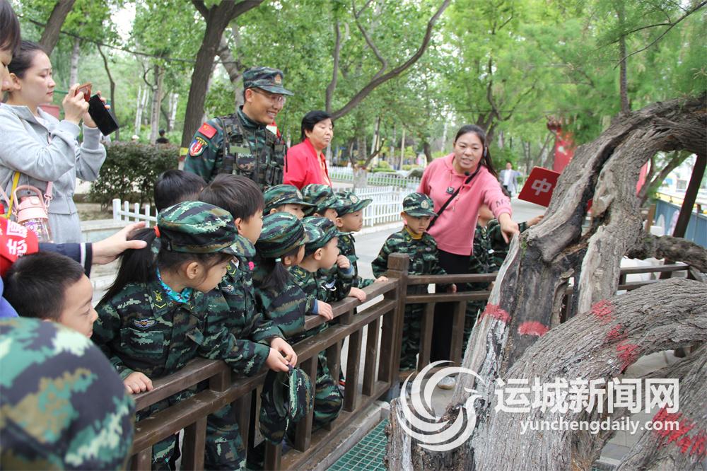 4月28日,运城市市直机关幼儿园组织中班幼儿开展了以“徒步寻春”为主题的实践活动。孩子们在家长志愿者的带领下来到市人民公园体验军训、寻找春天。