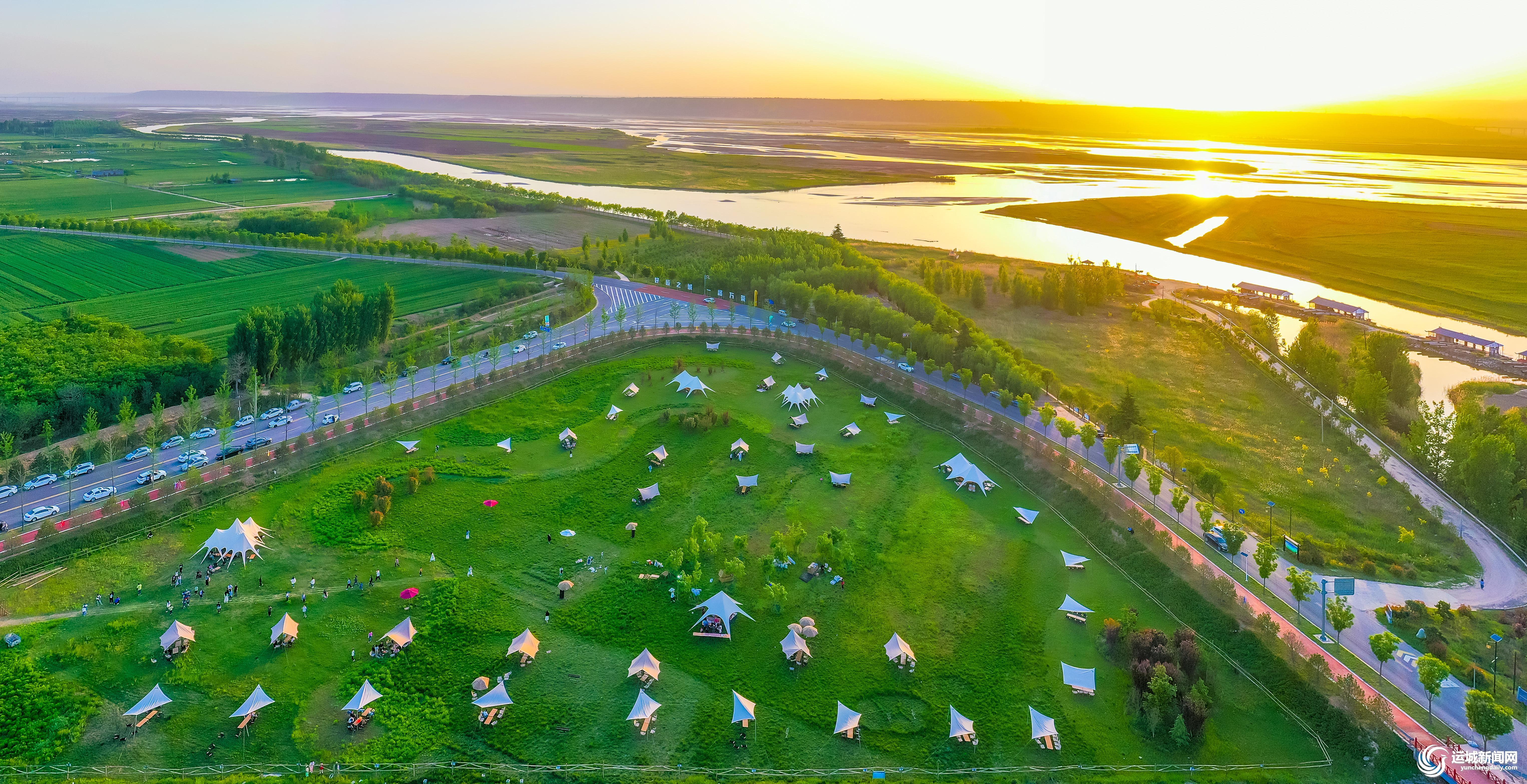 ▲游客在万荣县星古黄河一号露营地游玩,体验别样的假日生活。时下,流经万荣县的黄河与翠绿的麦田、黄河一号旅游公路以及特色旅游露营地等交相辉映,醉人的生态美景吸引不少游客前来游玩。
