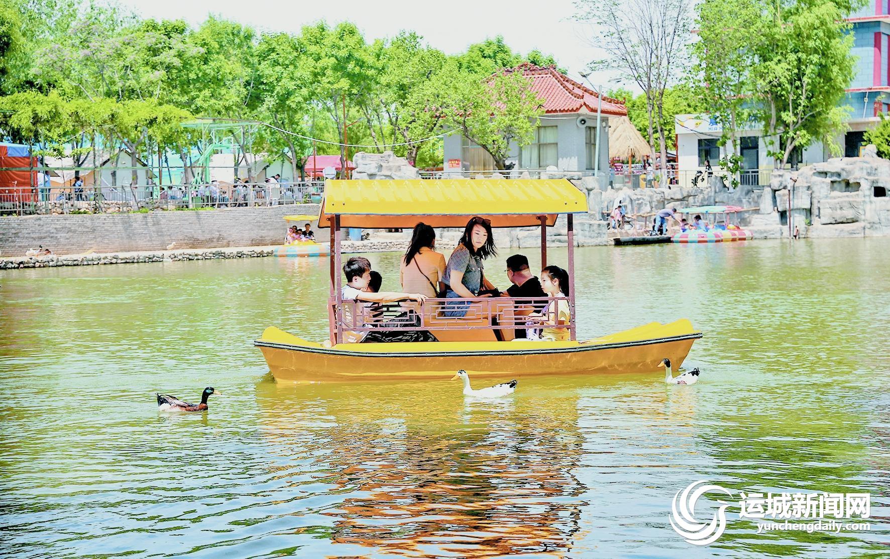 ▲游客在夏县南大里乡德兰度假村游玩,乐享假日休闲时光。