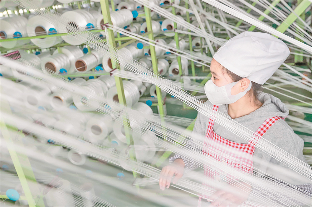 ▲5月1日,河北省遵化市一家化纤纺织企业的工人在车间工作。 新华社发(刘满仓 摄)
