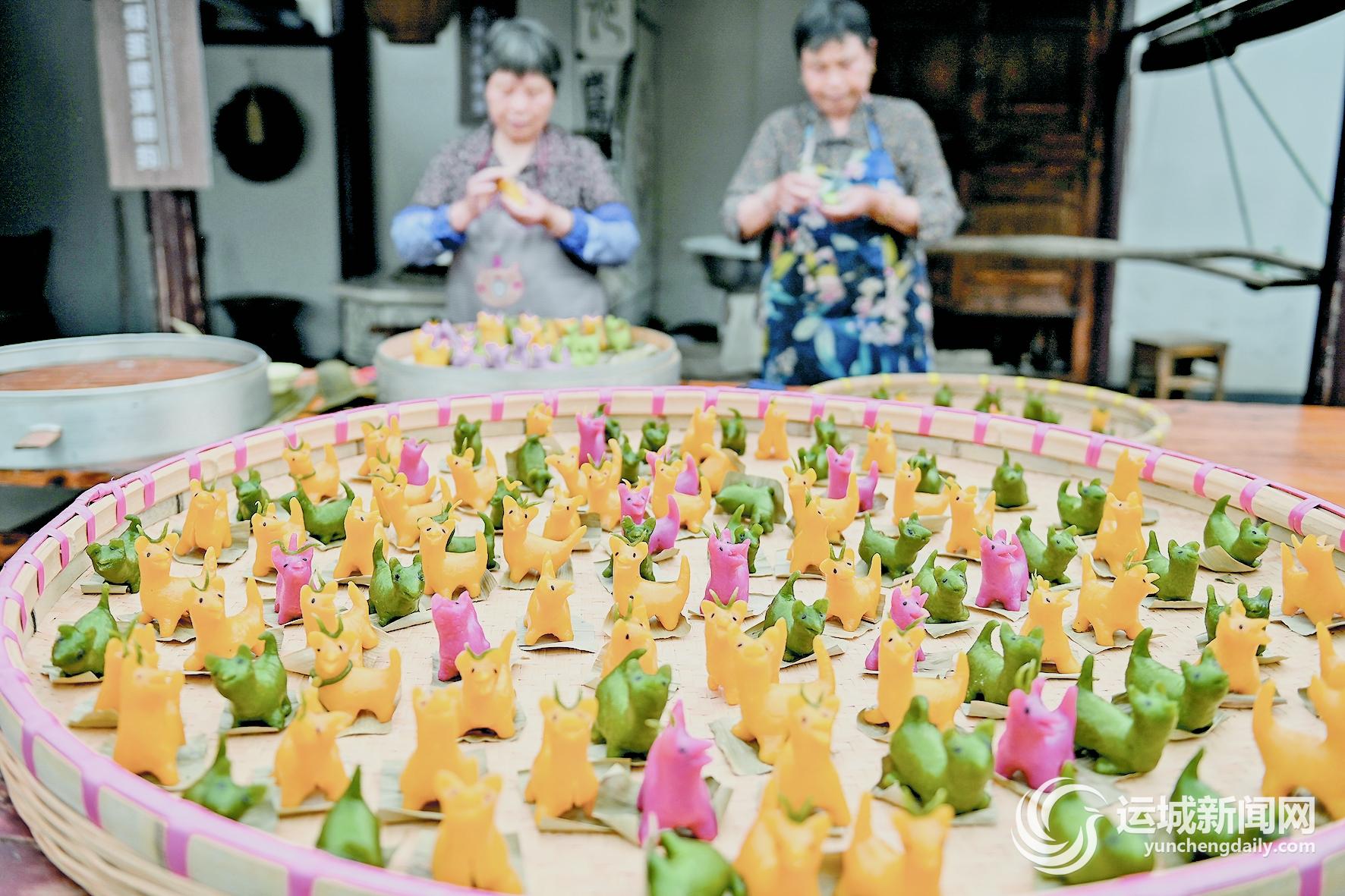 5月4日,村民在制作米塑“立夏狗”。