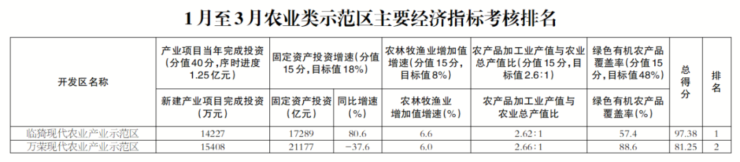 全市开发区2023年1月至3月主要经济指标考核排名