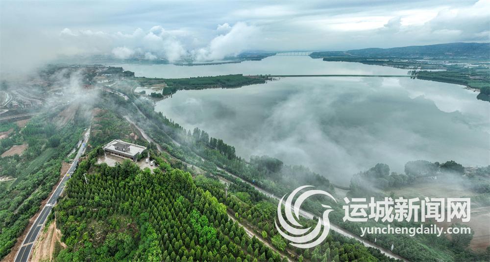 5月4日,平陆县境内黄河两岸出现云海景观。飘渺的云海、壮美的黄河与当地优美的田园风光交相辉映,构成一幅浑然天成的生态画卷。