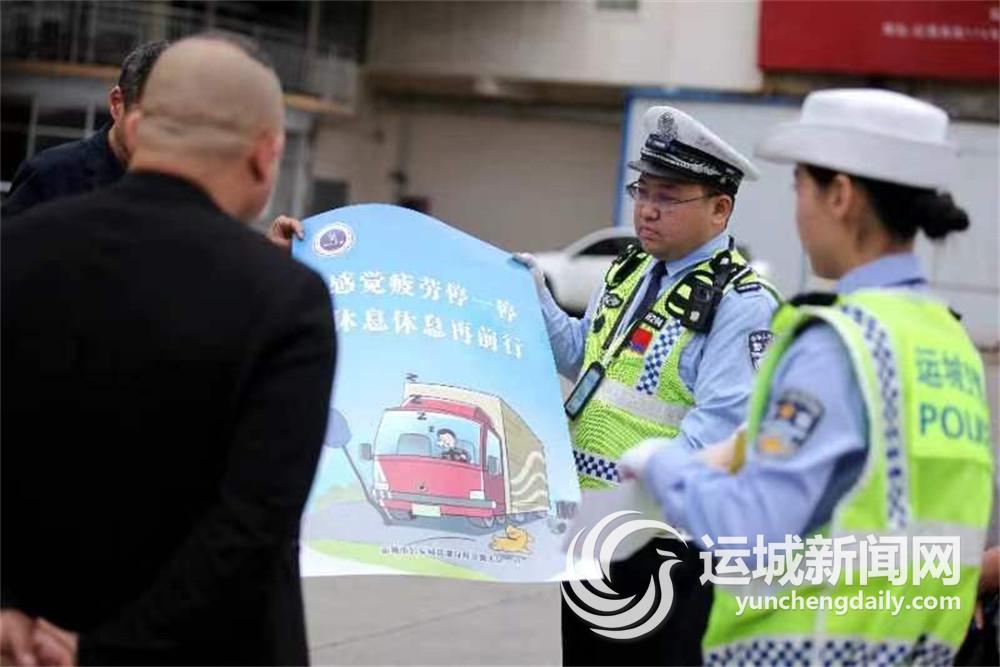 运城晚报讯(记者 刘凯华)为进一步提高驾乘人员的交通安全意识,加强客货运企业车辆及其驾驶人的源头管理,有效预防和减少道路交通事故的发生,5月5日,盐湖交警大队民辅警结合“春季守护行动”工作要求,走进辖区桦洋、中心汽车站、华旅物流园等客货、货运等运输输企业,利用宣传挂图、安全即时贴、安全彩页等,向驾驶人宣传讲解安全行车知识(下图)。