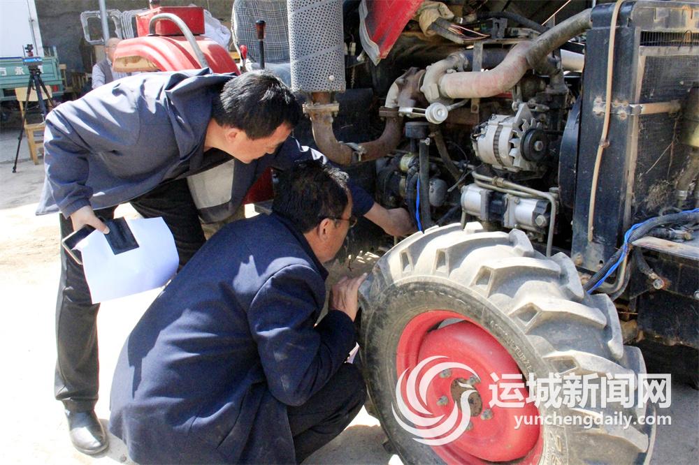 5月8日,闻喜县行政审批服务管理局工作人员在该县阳隅镇检验农机。
