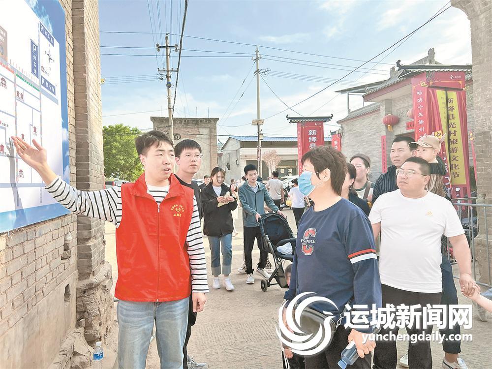 新绛县泽掌镇到村工作大学为游客讲解光村历史文化(资料图片)。
