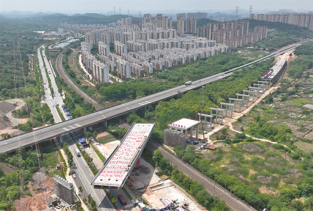 为实现有效平衡转体,施工单位中铁十一局用300吨配重使桥梁具备较好的平衡性,达到理想的转体条件,并采用精准控制手段,在规定的时间内完成转体,最大程度减小对武九铁路运营的影响。 新华社记者 程 敏 摄