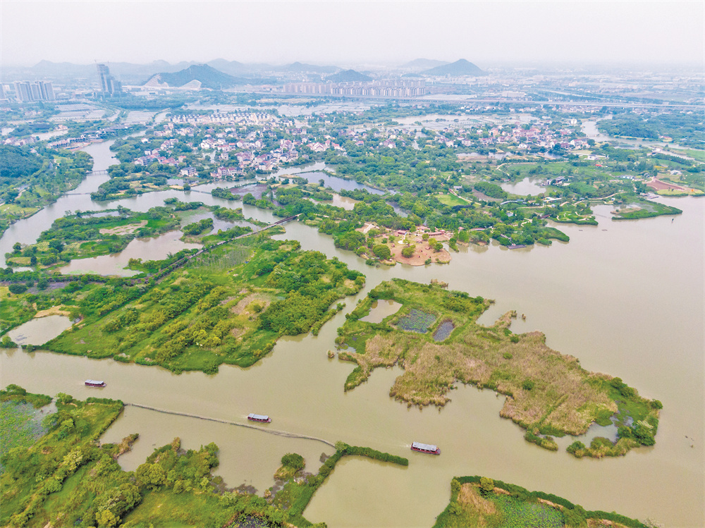 空中俯瞰位于德清县的下渚湖国家湿地公园