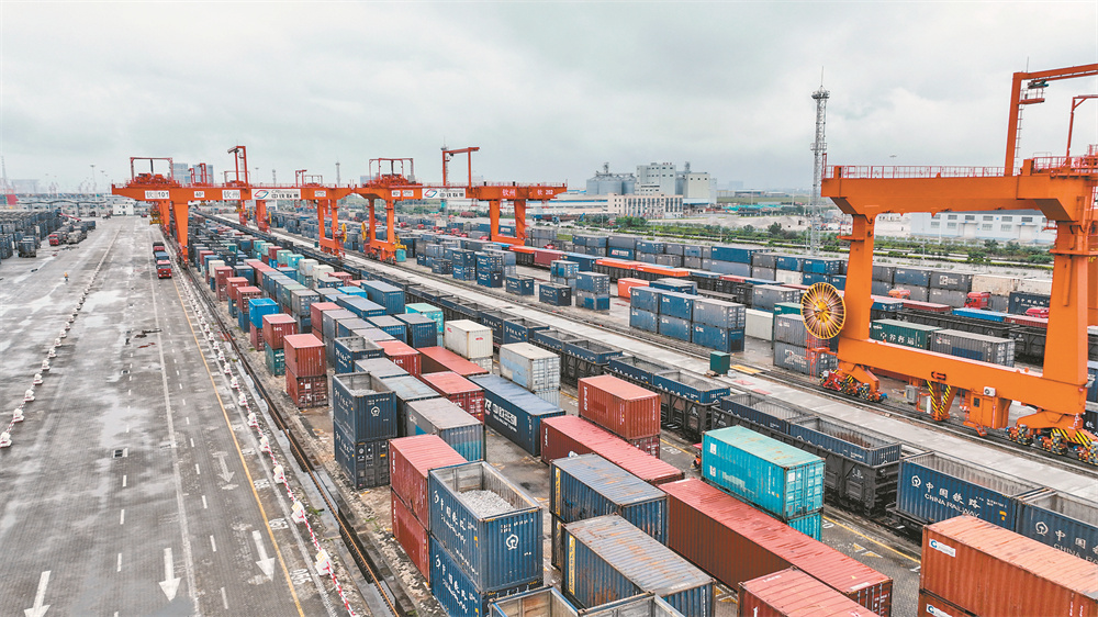 今年以来,随着RCEP红利释放和受益于“一带一路”倡议,西部陆海新通道铁海联运班列运输货物已突破30万标箱,同比增幅14%。目前,西部陆海新通道铁海联运班列货物运输品类已增加到940多种,辐射我国17省61市,通达全球119个国家和地区的393个港口。 新华社记者 张爱林 摄