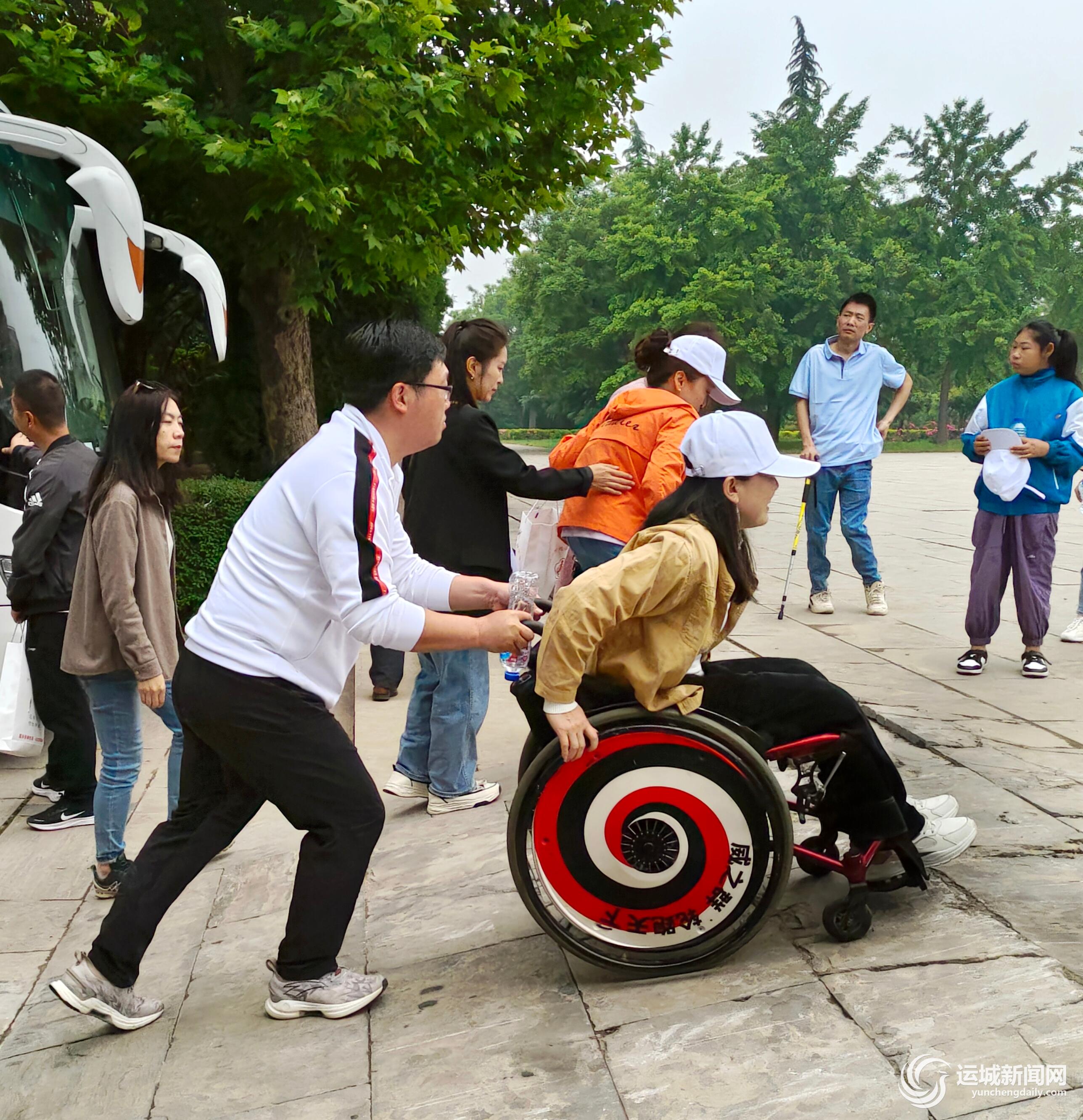 今年,市残联将残疾人文化进家庭“五个一”活动的地点安排在永济市。在工作人员和助残志愿者的帮助下,残疾人领略自然风光和人文景观,在旅游中放松心情,感受文化魅力(下图)。