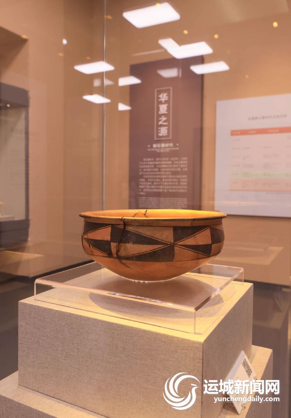运城博物馆陈列的东庄仰韶时期彩陶盆。