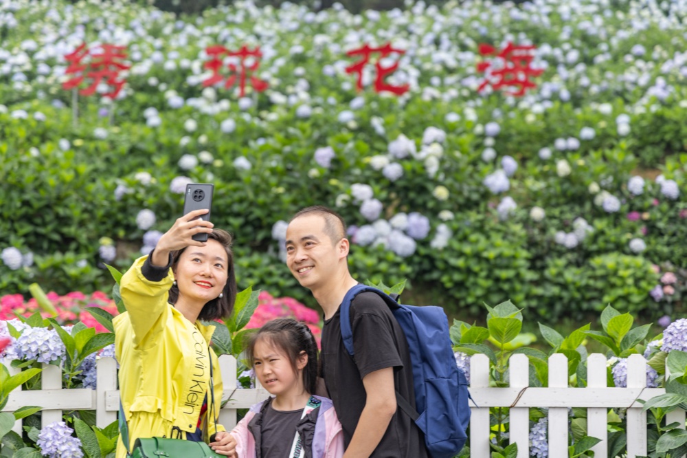 近日,柏树村绣球花基地的400亩绣球花竞相绽放,美不胜收,吸引不少游客前来赏花游玩。