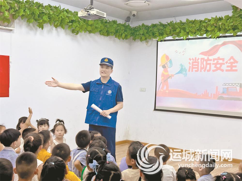 运城晚报讯(记者 张筱苑)5月18日下午,盐湖区东城街道学苑社区联合御溪苑卡蒙加幼儿园开展了消防安全进校园活动。