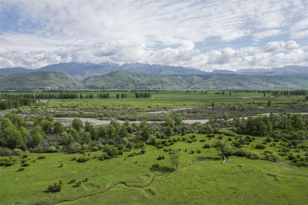 5月20日拍摄的那拉提河谷草原风光(无人机照片)。