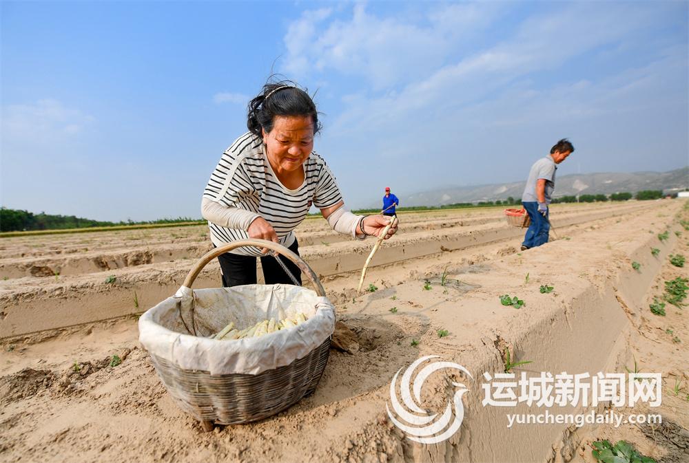 近年来,永济市把优化产业结构、发展特色农业作为助农增收的突破口,结合黄河滩地资源优势,以蒲州、韩阳、栲栳、张营等镇为重点,大力引导农民发展芦笋种植。目前,该市已建立万亩芦笋种植基地,芦笋产业成为当地农民增收致富的一项重要产业。 特约摄影 李向东 摄