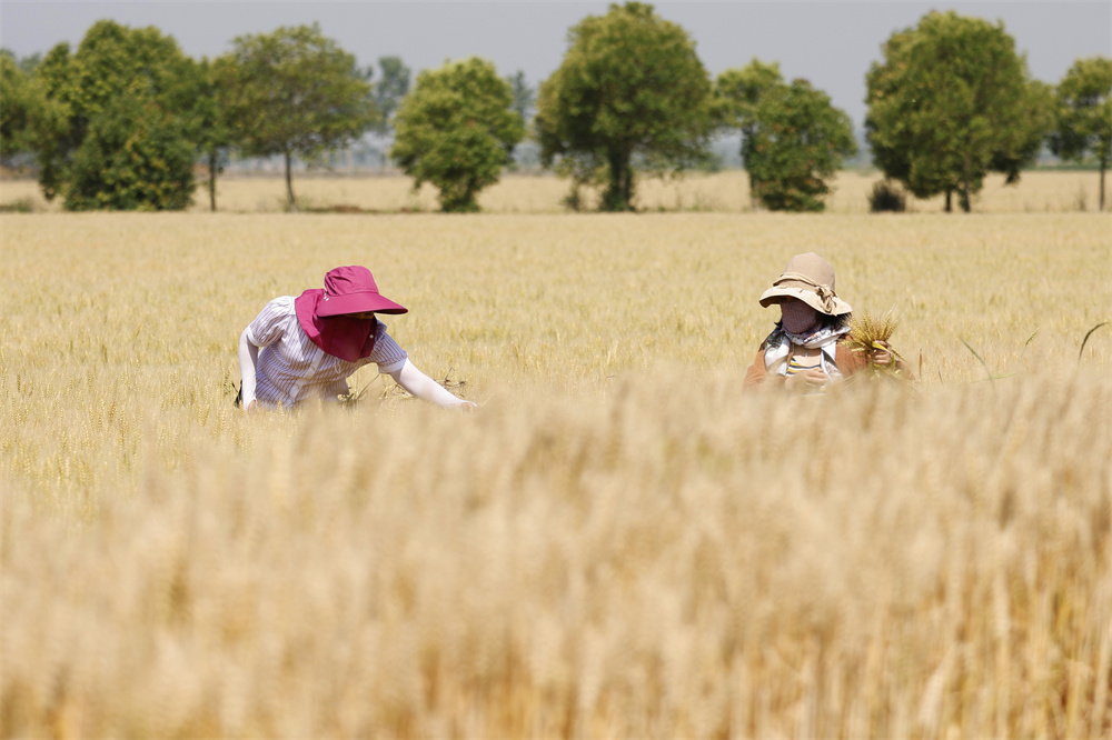 5月23日,农民在江苏省宿迁市泗洪县龙集镇勒东村麦田里除杂。