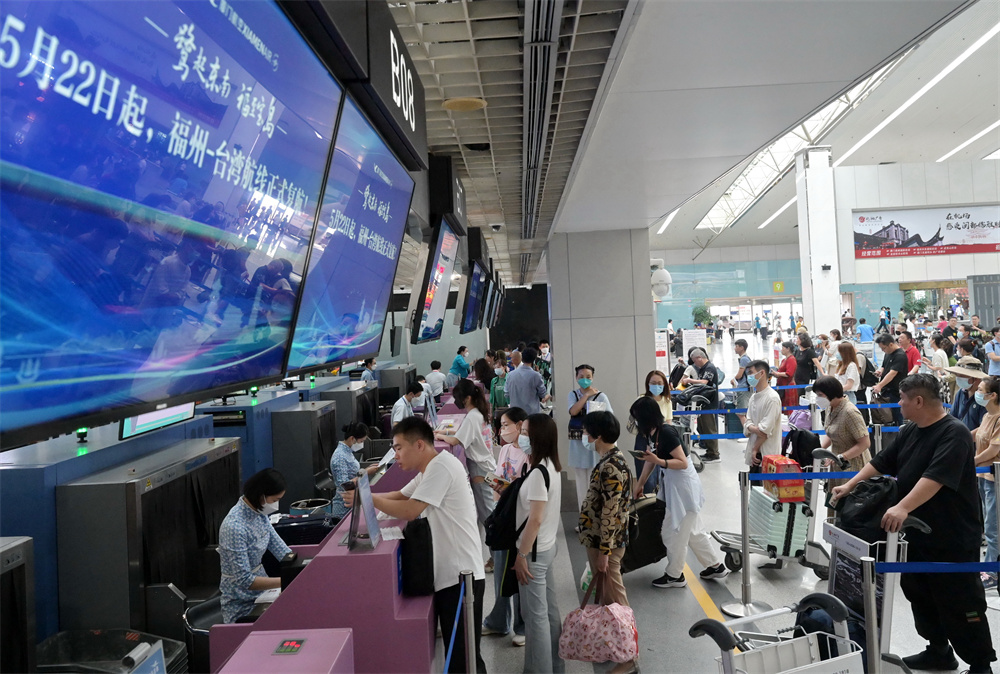 5月22日,旅客在福州长乐国际机场办理登机手续。当日,福州长乐国际机场往返台北松山机场的客运航线正式恢复运营。这是福州时隔三年重新恢复往返台湾地区的直飞客运航线。 新华社记者 林善传 摄