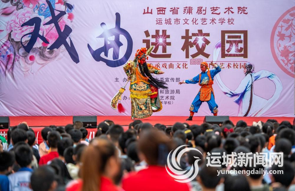 当日,为纪念毛泽东同志《在延安文艺座谈会上的讲话》发表81周年,运城市文化艺术学校演出团深入万荣县英华学校开展“戏曲进校园”活动,百余名演员为师生们表演了舞蹈、蒲剧、器乐演奏等精彩节目,给师生们带去了欢乐。 记者 薛俊 摄