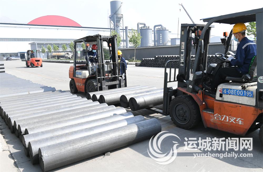 5月23日,稷山经济技术开发区超高功率石墨电极企业工人在转运产品。