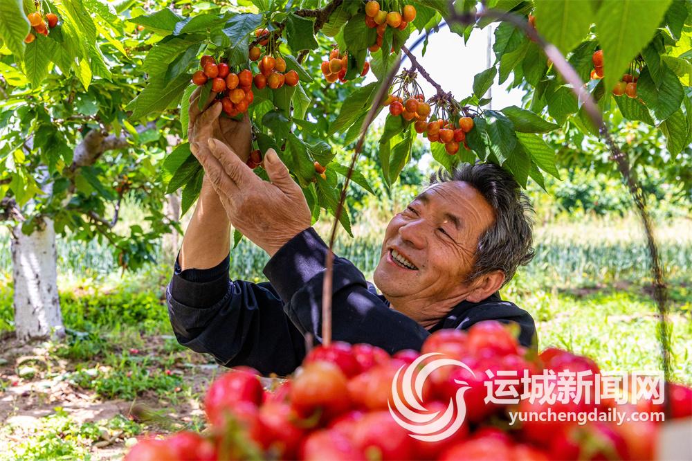 5月23日,万荣县通化镇村民在自家樱桃园采摘樱桃。