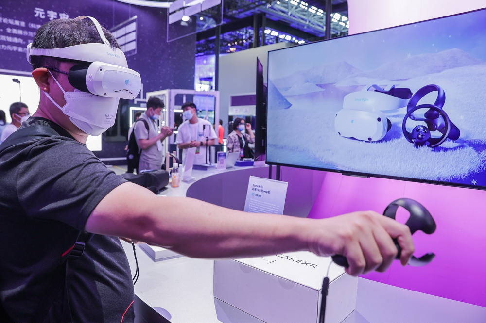 5月26日,参观者在中关村国家自主创新示范区展示中心内体验VR设备。
