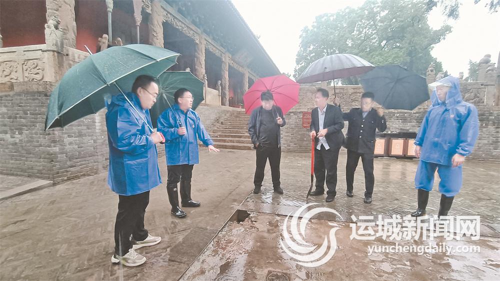 运城晚报讯(记者 刘亚)连日来,运城市出现持续降雨过程。5月29日下午,运城市解州关帝庙文物保护所各部门负责人,冒雨对解州关帝庙、常平关帝庙的文物建筑本体、附属文物、管理用房、排水通道进行巡查检查,排除安全隐患。