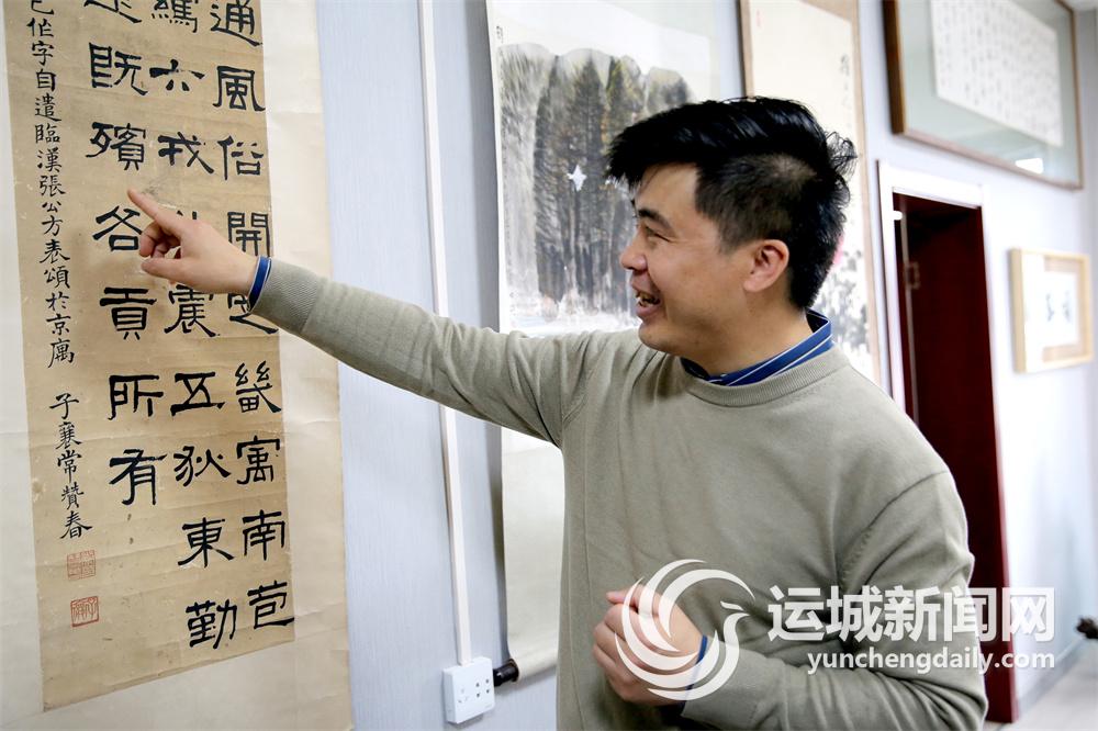 能将这么多名家之作集于一厅并有所研究的人,叫李晓强,笔名寒林。他是盐湖区姚孟街道居民,21世纪初,就因爱好书法跟随前辈张生习练。一边学习,一边交流,一边收藏……随着时间的推移,他在书画鉴赏等方面积累了诸多经验。