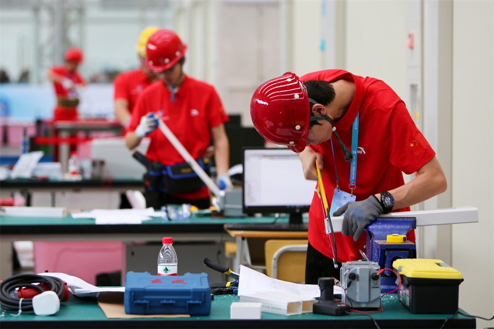 6月5日,在黑龙江省第一届职业技能大赛现场,选手正在参加电气装置比赛。