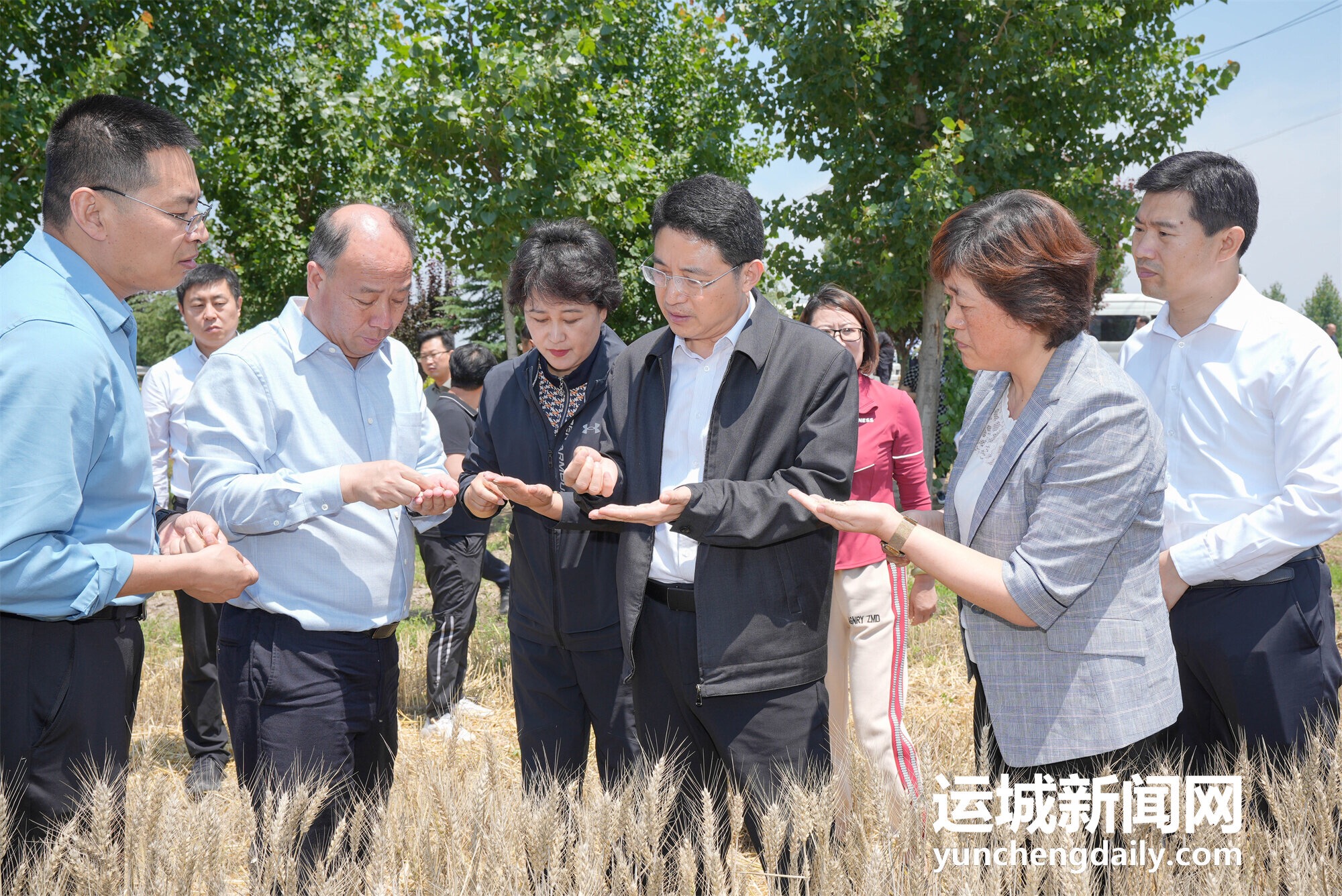 本报讯(记者 张 越)6月6日,市长储祥好在临猗县调研夏收、乡村振兴、农产品精深加工等工作。他强调,要深入学习贯彻习近平总书记关于“三农”工作的重要论述和考察运城重要指示精神,坚决扛牢粮食安全政治责任,加快小麦抢收,强化服务保障,打好“龙口夺食”硬仗,做好“粮头食尾”“农头工尾”大文章,以“特”“优”农业带动乡村产业全链条升级,努力绘就新时代乡村振兴美丽图景。副市长李哲,市政府秘书长王红波参加。