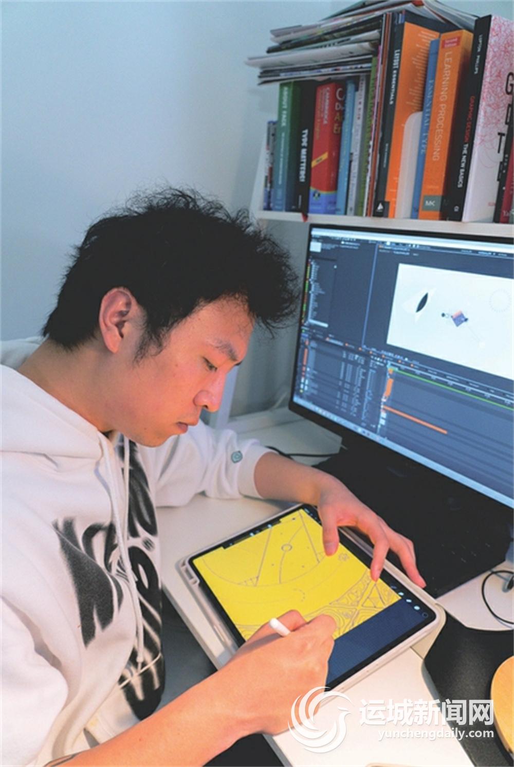 陈烨是一个“90后”,出生成长于运城。在那个文化作品蓬勃发展的年代,陈烨从小就对“纸片人”能在荧幕上跳跃变幻有着浓烈的兴趣。“我对动态设计最初的概念就来源于儿时看过的少儿节目,节目组会把全国各地小朋友寄来的画作,通过特效做成动态的图片,稚嫩的童笔,旋转着散发光芒的太阳,让当时的我非常着迷。我也会在想象中让自己的创作动起来,在对动态设计一无所知的年纪,这种想象是一种渴望,也是我朦胧梦想的雏形。”他说。