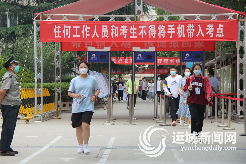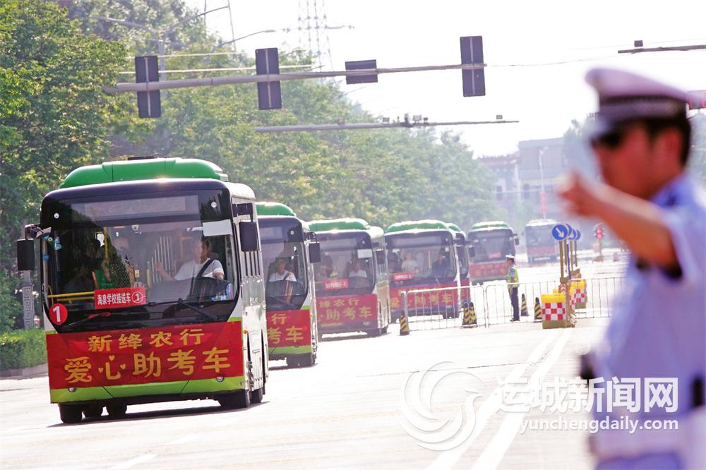6月7日早上,在新绛县第二中学考点,交警指挥接送考生车辆有序通行。 特约摄影 高新生