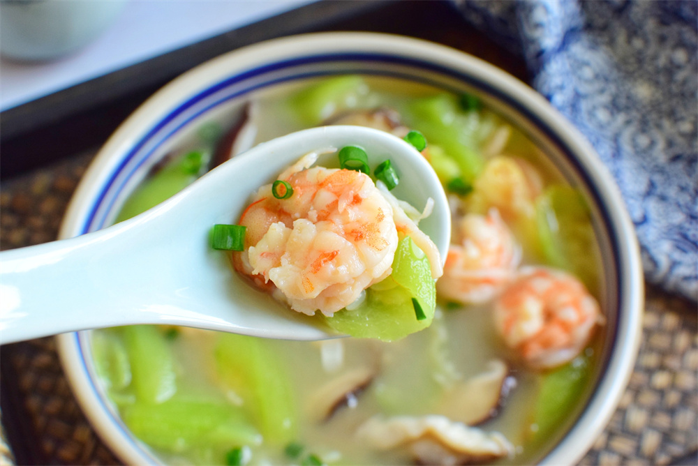 汤品点评:初夏的丝瓜翠绿鲜嫩,清香脆甜,是夏季的当季蔬菜。丝瓜味甘性凉,有清热凉血、生津利尿的功效,很适合胃肠燥热人群,不会损伤阳气导致脾胃虚寒。
