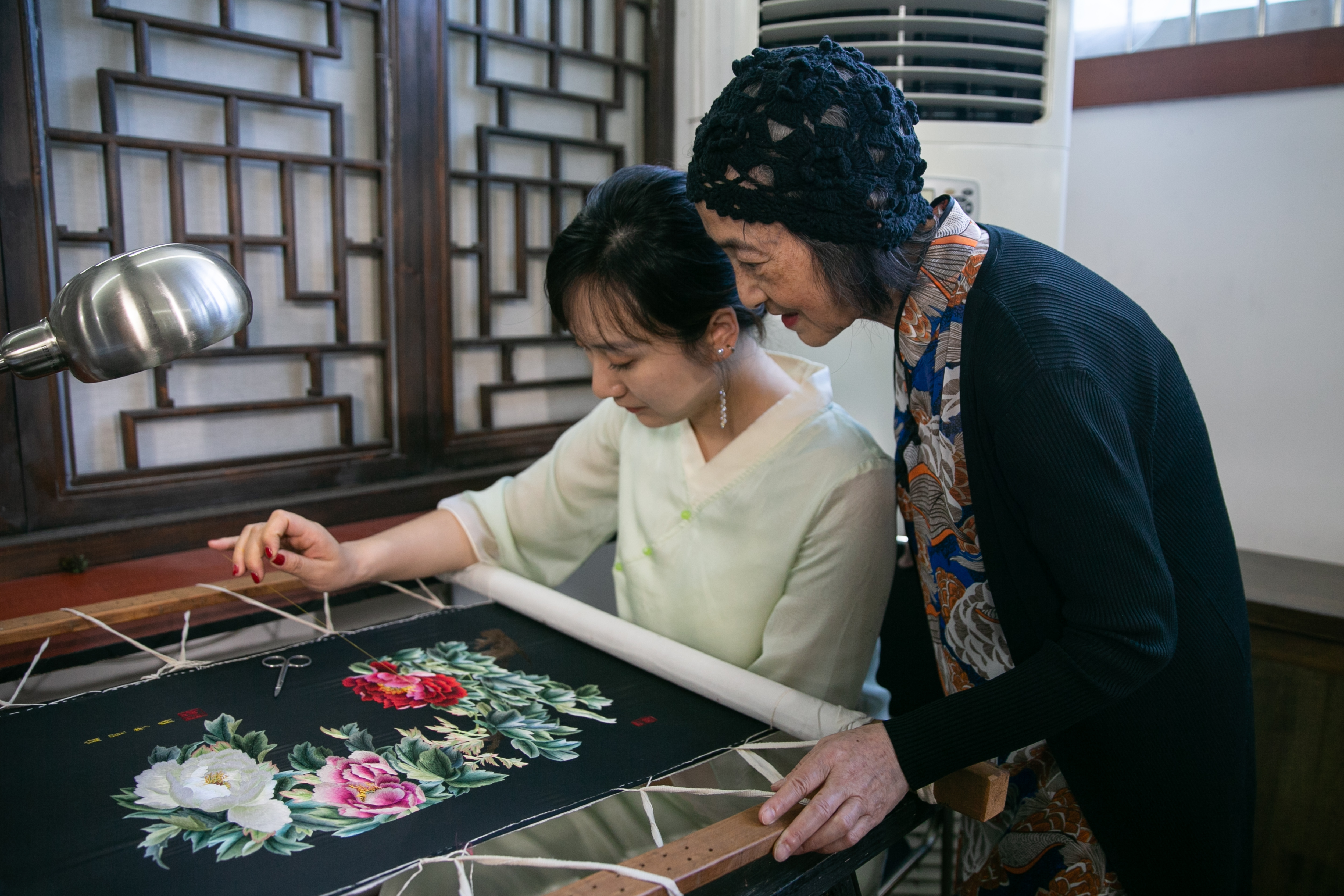 年近70岁的康宁是全国仅有的两位“国家级非物质文化遗产项目(蜀绣)代表性传承人”之一。如今,康宁每年不定期招收学员跟随自己学习蜀绣,希望能把这项技艺继续传承下去。