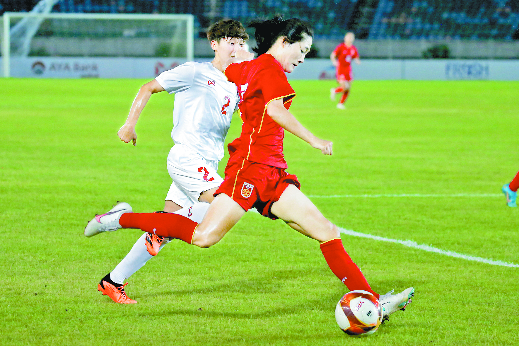 当日,在缅甸仰光举行的2024年乌兹别克斯坦U20女足亚洲杯预选赛第二阶段B组比赛中,中国队以5比0战胜缅甸队,取得三连胜,以小组第一的成绩晋级正赛。 新华社发(苗觉梭 摄)