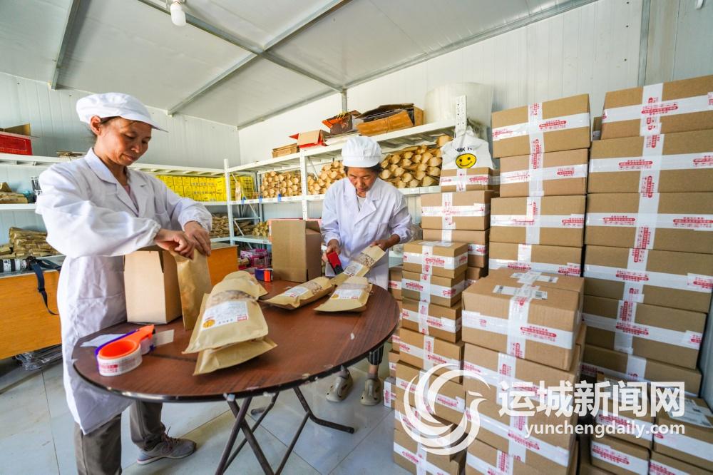 垣曲县长直乡长直村老鲁家赵小枝和工人在一起打包炒粸。