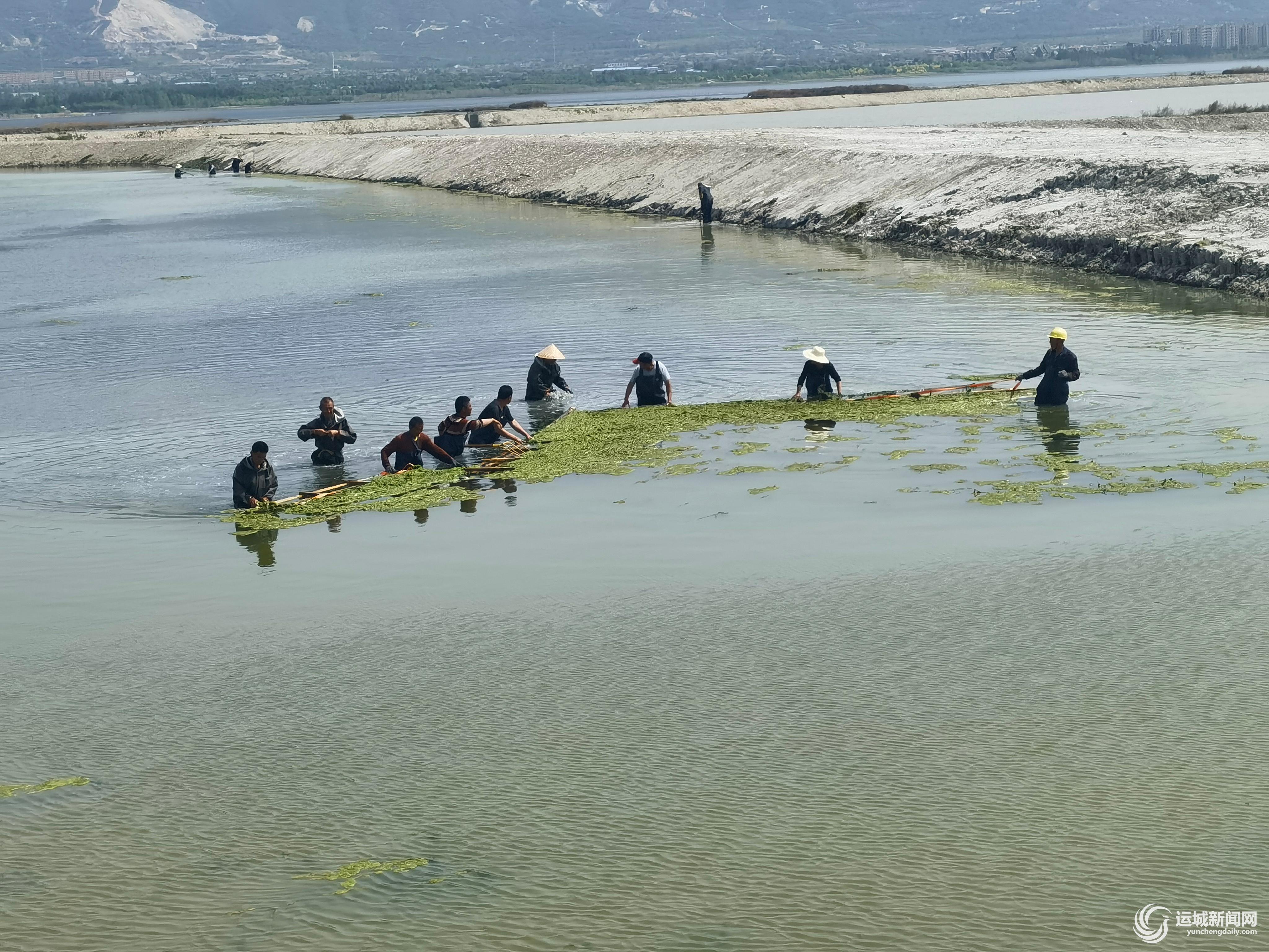 运城晚报讯(记者 李婉玉)连日来,运城市盐保中心积极组织实施“净湖行动”,加快清理运城盐湖湖面的绿藻(下图)。