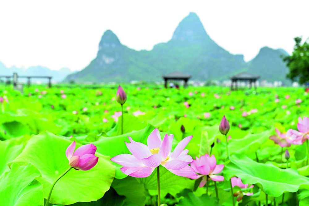 6月13日,柳州市柳江区百朋镇万亩荷塘里荷花盛开。