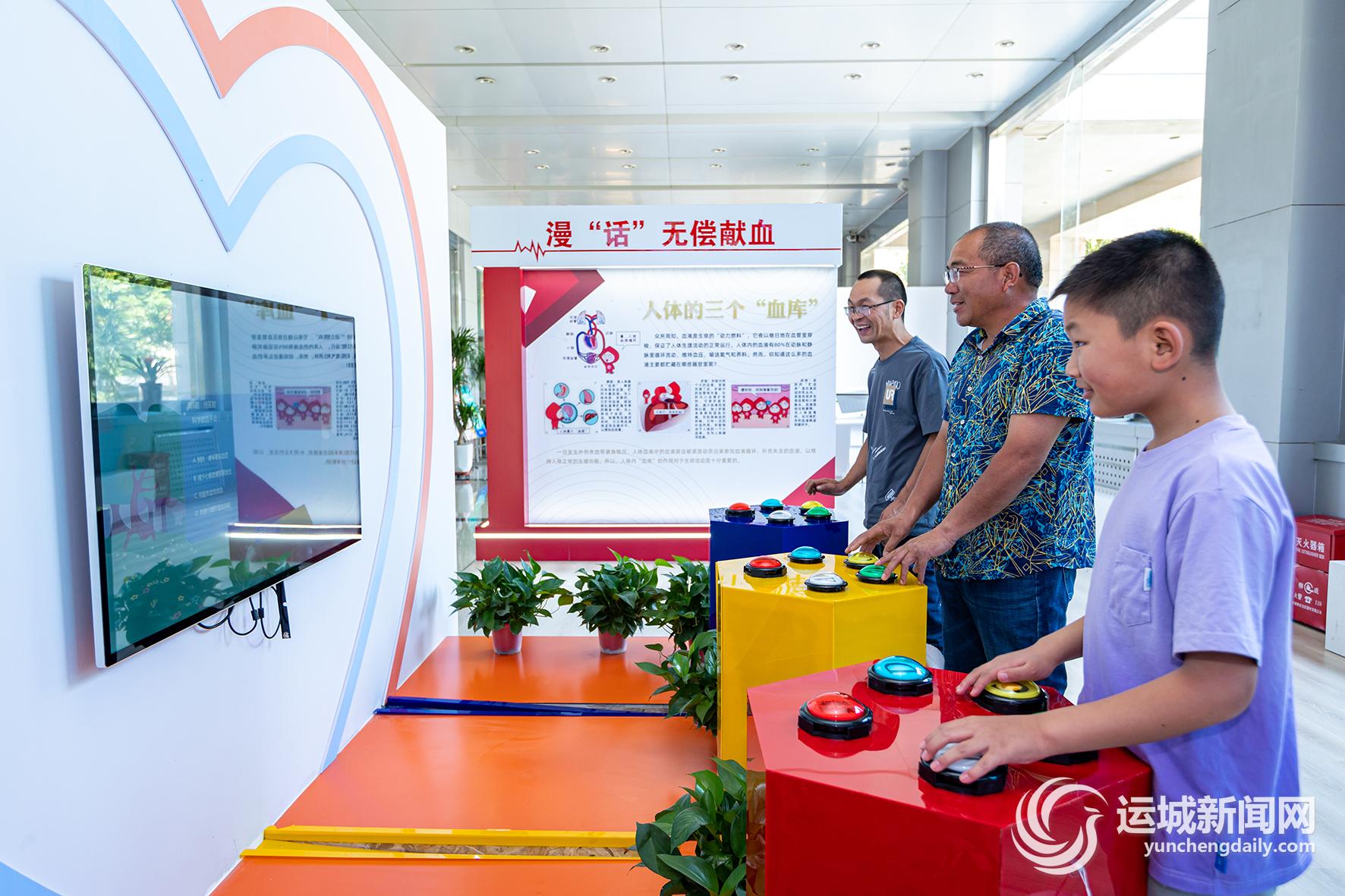 市民在运城市中心血站无偿献血科普教育基地参与无偿献血知识抢答游戏。